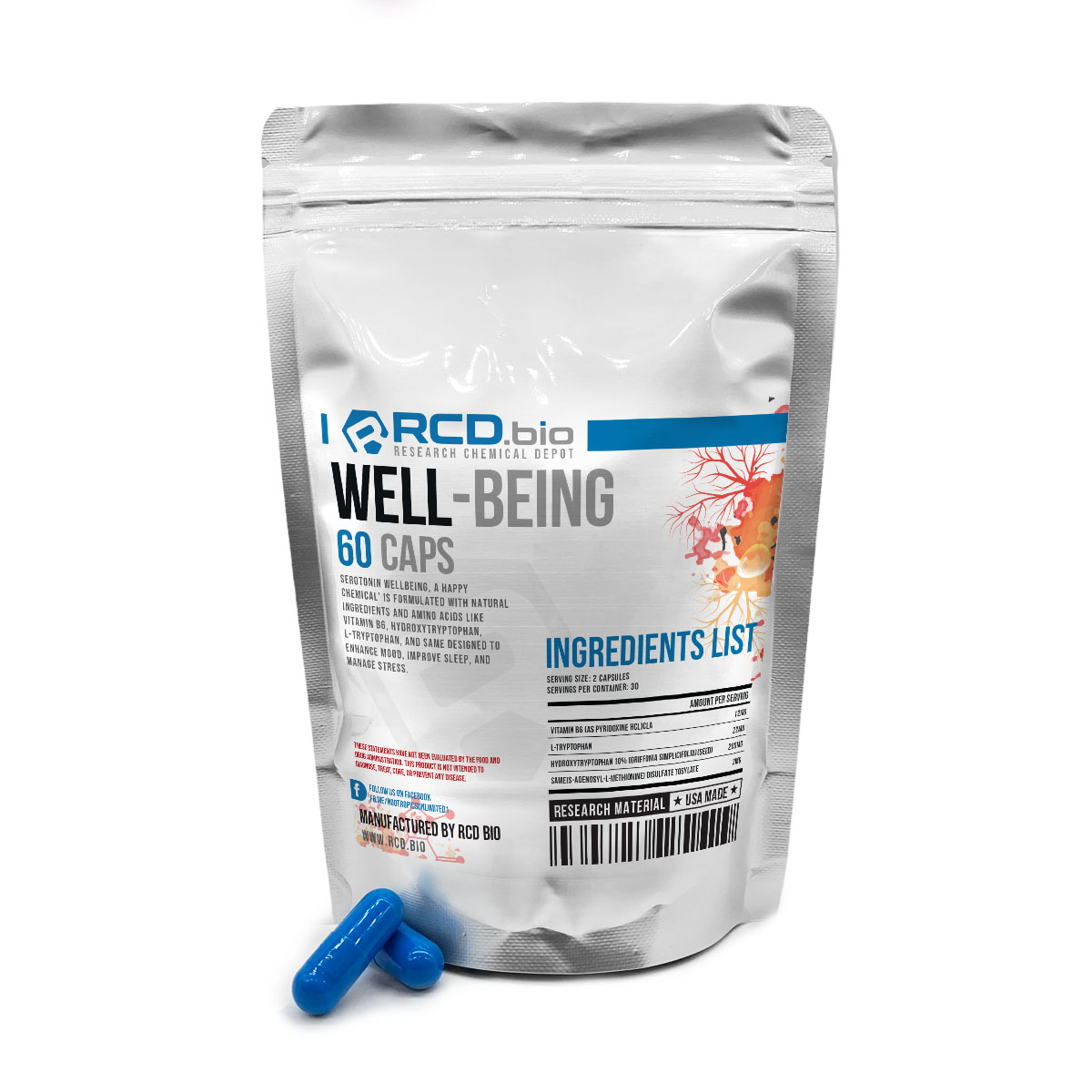 Well-Being is a serotonin booster designed to potentially elevate the body’s natural serotonin levels. Serotonin is a neurotransmitter that acts as a chemical messenger in the brain, transmitting brain signals.